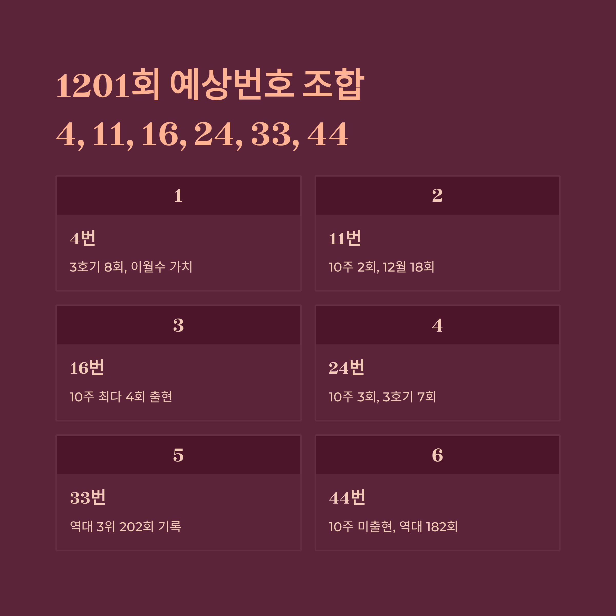 예상번호: 4, 11, 16, 24, 33, 44